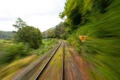Wir fahren zügig.Wie eine Schnur bewegen wir uns durch das Land. Vorbei an holprigen Straßen, gefährlichen Schluchten, dunklen , ja fast schwarzen Wäldern. Uns wird nichts passieren. Wir sind sicher im Zug unseres Lebens und wählen erst den eigenständigen Weg, wenn das Leben da draußen hell und freundlich auf uns scheint.